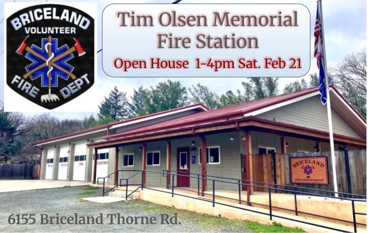 All are welcome to attend our Open House at the Tim Olsen Memorial Fire Station at 6155 Briceland Thorne Rd in ‘downtown’ Briceland from 1:00 to 4:00 p.m. on February 21, 2026.